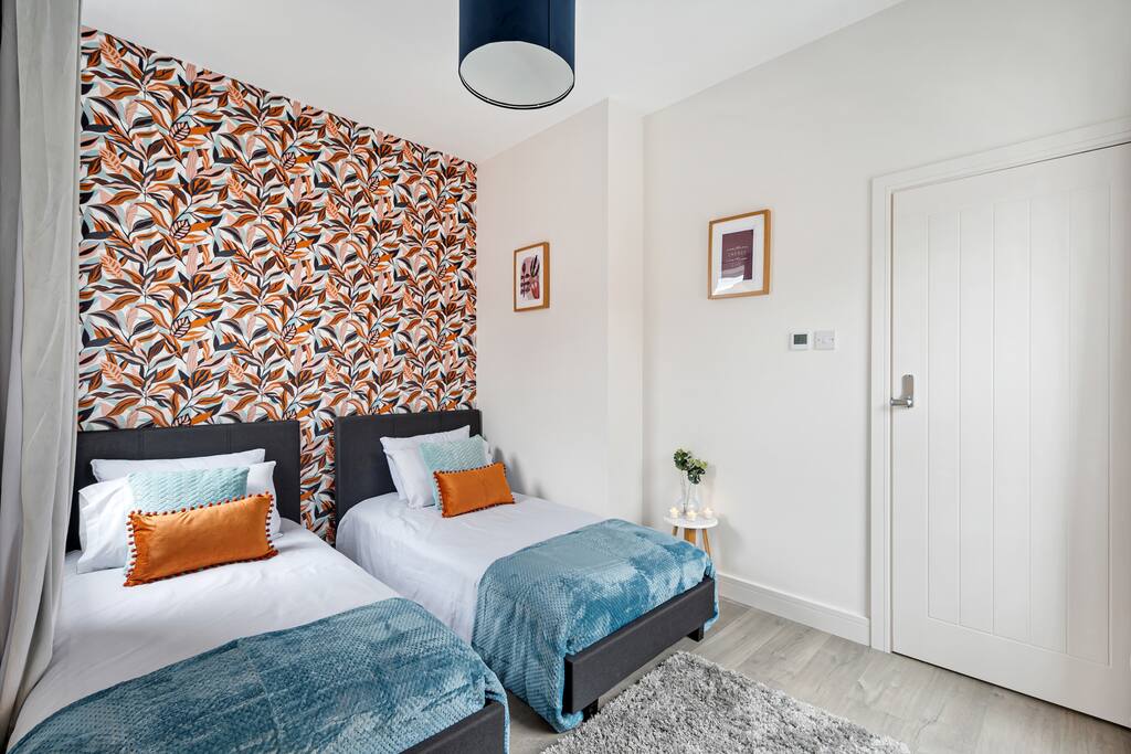 Stylish comfort for up to 6 guests in Stockport, minutes from Manchester Airport. Ideal for families, friends, or contractors seeking space, peace, and great access. Fast Wi-Fi, private entrance, parking, and professional housekeeping. Two floors feature a bright lounge with sofa bed, a large fully equipped kitchen/dining area, laundry, front garden, and rear yard with seating. Upstairs: master en-suite with king bed & workspace; second en-suite with dressing area & two singles.