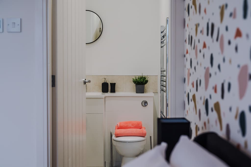 Welcome to our beautifully renovated, charm-filled home - where comfort meets convenience. Perfect for families, friends, or business travellers, this two-bedroom, three-bathroom haven invites you to unwind, work, and explore. What Makes This Home Special; Spacious, airy living room with a plush L-shaped sofa bed that converts to a double bed, adding 2 extra sleeping spots. Streaming-ready TV and ample seating - great for movie nights or catching up on the day’s adventures. High-speed Wi-Fi throughout the house for work, remote learning, or binge-watching your favourite shows. Two en-suite bedrooms for absolute privacy and comfort. Sleeping Arrangements; Master Suite: King-size bed and an en-suite bathroom Second Bedroom: Two single beds with its own en-suite bathroom Additional sleeping: Sofa bed in the living room (selected for a comfortable night's sleep) Culinary & Dining; Fully equipped kitchen with all the essentials for home cooking Bright dining area within the kitchen - perfect for family meals or friendly gatherings Starter pack of consumables provided on arrival (toiletries, toilet paper, rubbish bags, cleaning products) Coffee & Refreshments; Nescafé Dolce Gusto multi-beverage coffee machine for hot and cold drinks Pods recommended: Starbucks by Nescafé Dolce Gusto or Nescafé Dolce Gusto varieties Please note: Coffee pods are not supplied Practicalities; Linen provided for up to 6 guests Washing machine and tumble dryer for your convenience On-street parking: 7 free spaces nearby (3 in front, 4 adjacent) - easy and stress-free parking A Location That Delights; Edgeley, Stockport – a welcoming neighbourhood with easy access to shops, cafes, and local amenities Within reach of popular sights, shopping, and dining in Stockport and the surrounding area A custom guest guidebook with our favourite restaurants, bars, and activities to help you make the most of your stay Guest Experience; We have designed this home to be your cosy, reliable base. Bright bedrooms, thoughtful touches, and everything you need for a relaxing stay. Whether you are here for sightseeing, a shopping trip, or a productive business visit, you will feel right at home from the moment you arrive. We cannot wait to host you at our Stockport retreat and help make your stay unforgettable. If you have any special requests, just let us know!